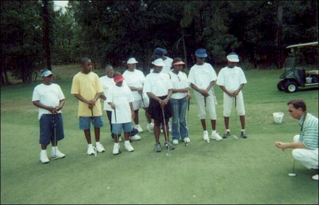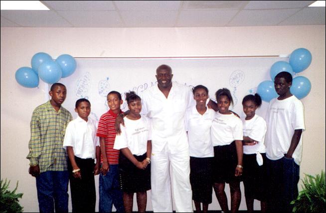 Williamsburg Graduation (7-28-2003). Ervin Parker (center) and students.