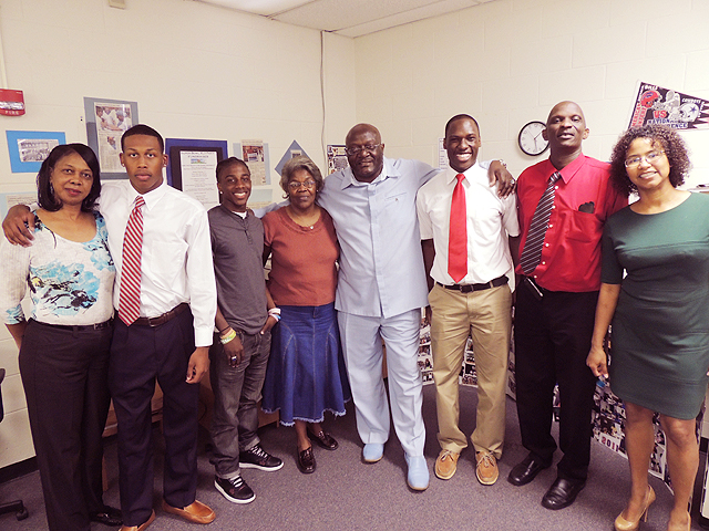 BPLA Scholarship Finalists: From left to right: Mrs. Patricia McCrea, Montcerrio McCrea, Jaleel Filmore; Mrs. Emma Filmore, Mr. Ervin Parker, Alvin Walker Jr., Alvin Walker Sr., and Ms. Marilyn Hemingway